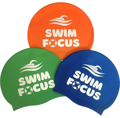 Helps to keep hair dry and out of your child's face during swimming lessons. Our one size swim hats are available in orange, blue or green